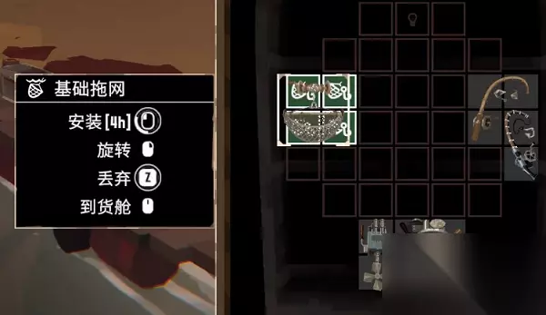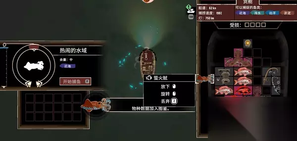 6、玩家需要安装好拖网,在晚上前往海湾附近,将船往前开,使用尾部的拖网就能捕捉拉。