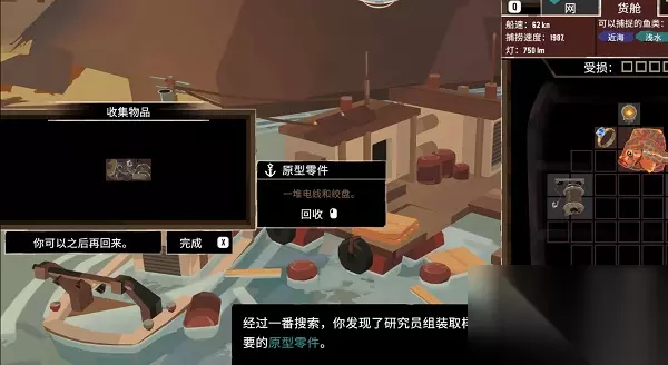 9、然后任务会提示正在开发一种深海钓具,这个时候需要玩家帮忙找几个原型零件。