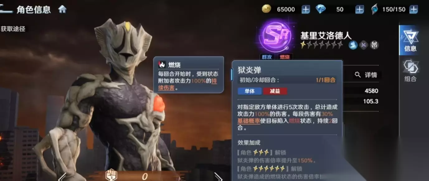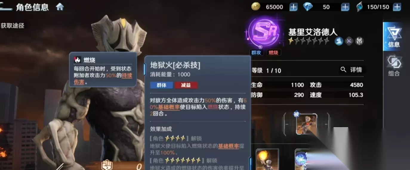 基里艾洛德人的战术定位聚焦于群体压制与异常状态的持续渗透。其被动技能“精神生命体”可在战斗初始即提升20%效果命中率,显著增强控制链的可靠性。该机制与必杀技“地狱火”形成深度协同:后者对敌方全体施加多段燃烧判定,实现稳定、长效的范围伤害输出,在清剿大量低阶单位时展现出极高的战略优先级。