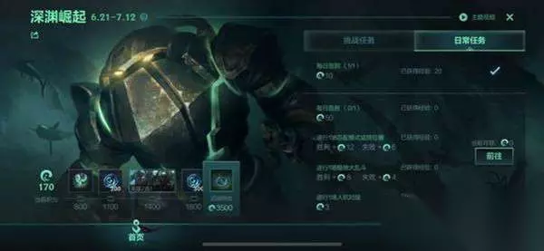 英雄联盟LOL手游深渊崛起活动攻略: 当你站在比尔吉沃特的码头,吹着微微腥咸的风,请务必注意脚下翻腾的海水——他们来了 召唤师前往游戏完成日常任务和挑战任务,即可获得活动积分,当活动积分到达指定数量解锁里程碑奖励! 此外还开启了全服排行榜,活动设有多阶段的名次奖励,活动结束后会根据最终排名发放奖励。 活动参与时间:6月21日10点陆续开启-7月12日23:59