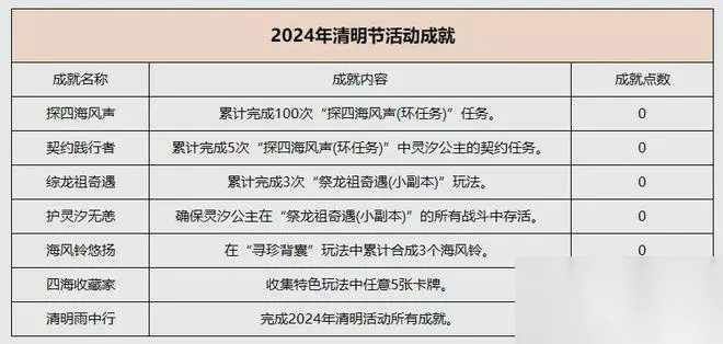 五、活动成就 本次清明节只有1点成就点可以获取,需要完成全部清明节相关的玩法成就才能获得。好在其他成就也十分容易达成,基本上没有压力,这1点成就也是可以轻轻松松就收入囊中了。