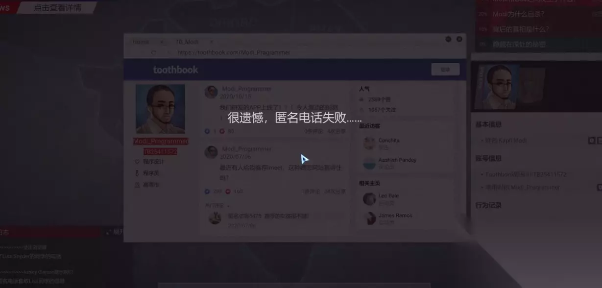 7、通过推特,我们会得到一些补充信息和一个电话号码,这里是本关最大的难点,需要根据lisa的性格以及实际情况去选择合适的答案,大家如果拿不准就直接按照:实话实话—关于lisa—关于大学,这三个选项来选择,就可以完成本次电话,并从中获得有效信息。