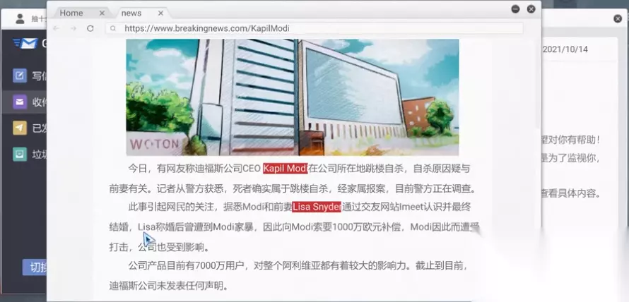 2、之后我们可以通过该新闻,了解到该事件目前的状况,最重要的是要在该网页中找到Kapil Modi(死者)、Lisa Snyder (死者妻子)。