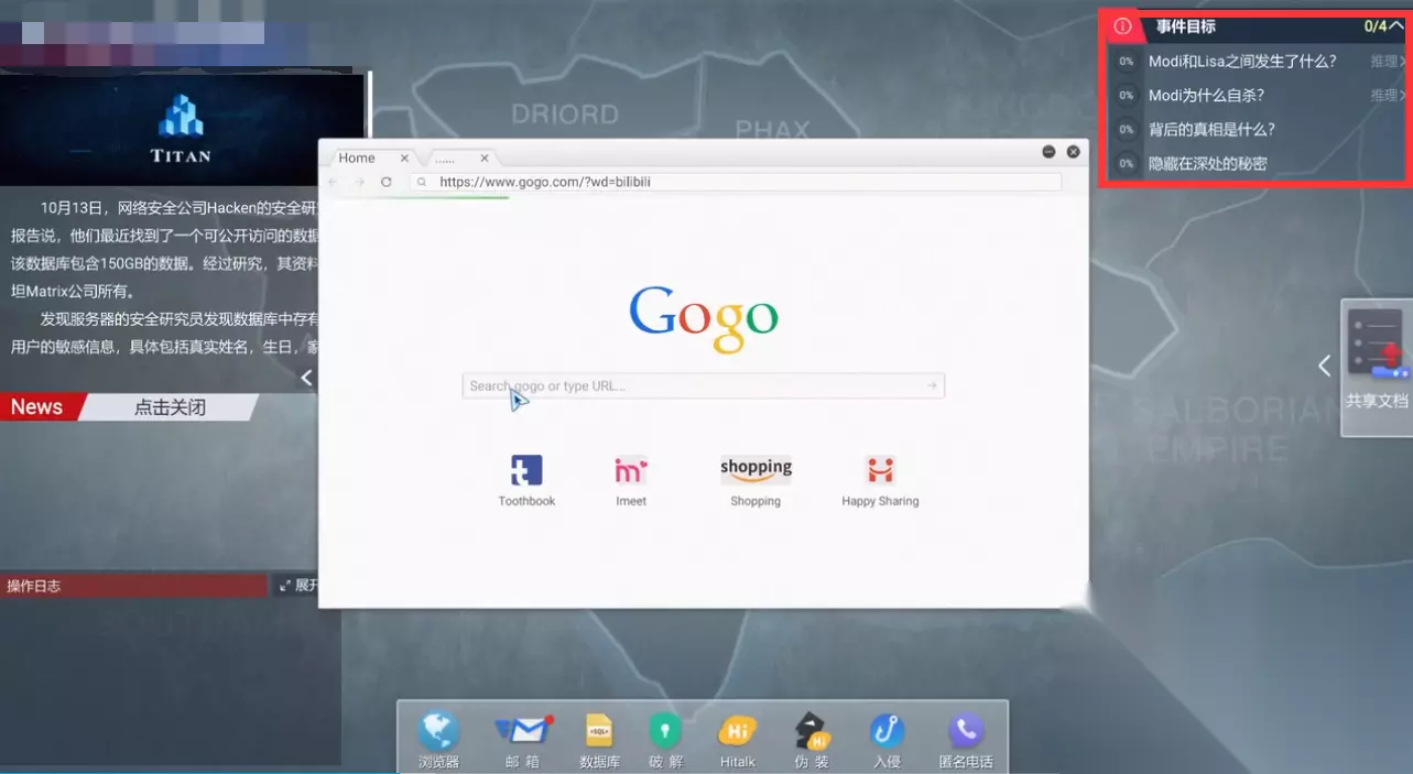 1、游戏每一章的任务在右上角会有介绍,大家可以随时看到游戏的进度,首先我们打开右下角的邮件,里面会有一个网址,打开后会跳转到一则新闻。
