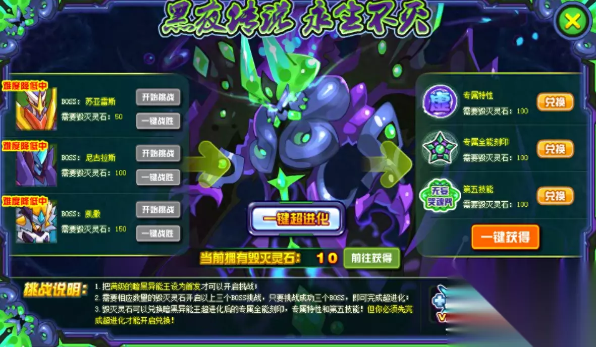 但对于这个精灵褒贬不一,成型之后的异天魔君说实话不弱,外加花式跳拦截,在登场之后PVP也算是一个强力精灵。但是现在来看,即使这种亲爹级的效果,异天霸君也是一块扶不上墙的烂泥,在混伤遍地走的时代,他显然没有以前能耗了,而输出又没红没粉,导致现在就是一个废物精灵。