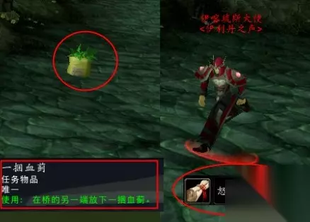 这个任务需要玩家们前往石桥的另一端。 然后再指定的地点使用这个一捆血蓟的道具。