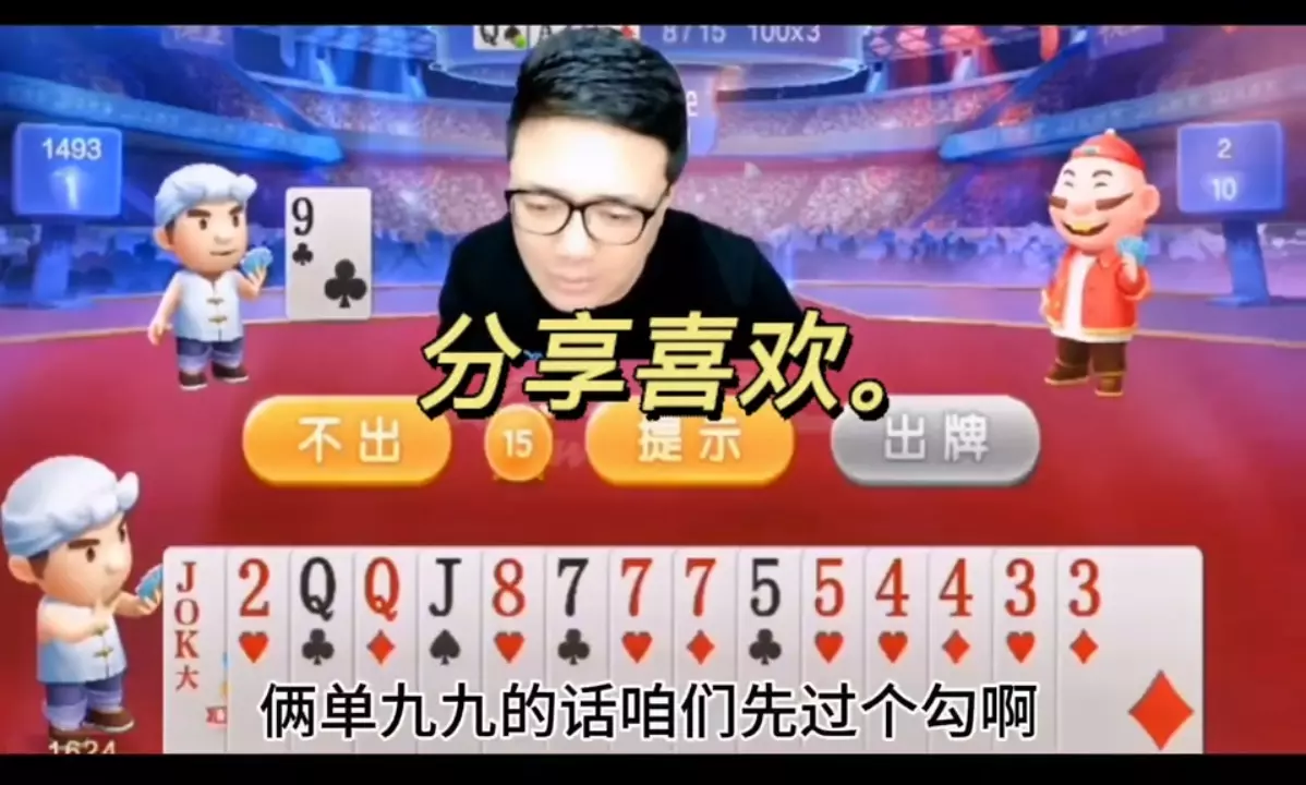 三岁玩牌破釜沉舟四个3的大胆一炸后期残局细腻的行牌为自己争取到了胜利!