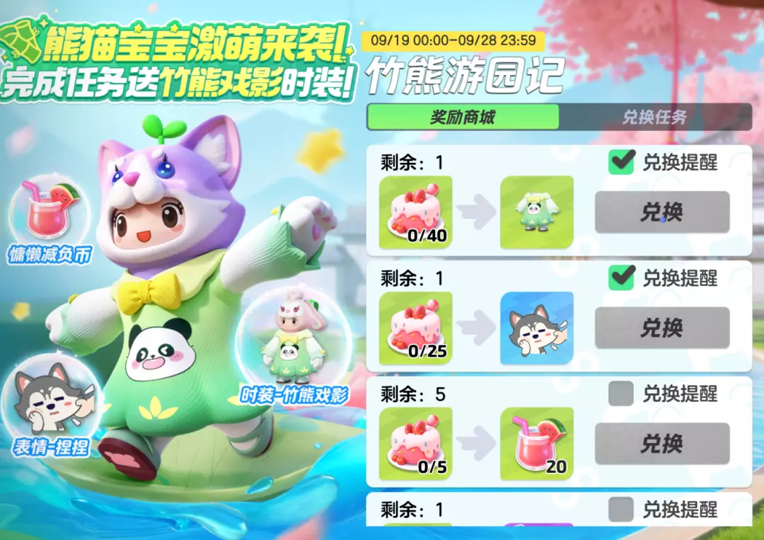 即有机会兑换时装 竹熊戏影、表情 捏捏