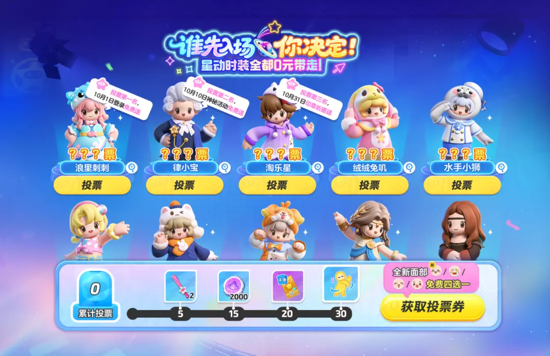 星宝们完成任务,即可获得投票券