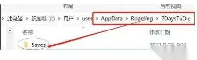 3、再打开“Roaming”文件夹,就能找到“7DaysToDie”文件夹了。 4、最后在其中就可以看到“saves”存档文件夹了,这里就是存档位置。