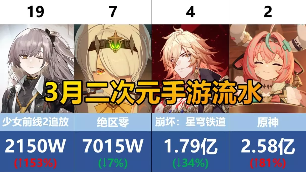 本排名为各手游在国服移动端的流水排名,未包含PC、主机、云游和海外流水。 统计时间段:2025年3月1日到3月31日 女性向游戏安卓系数按1.8倍粗算,其余按2…