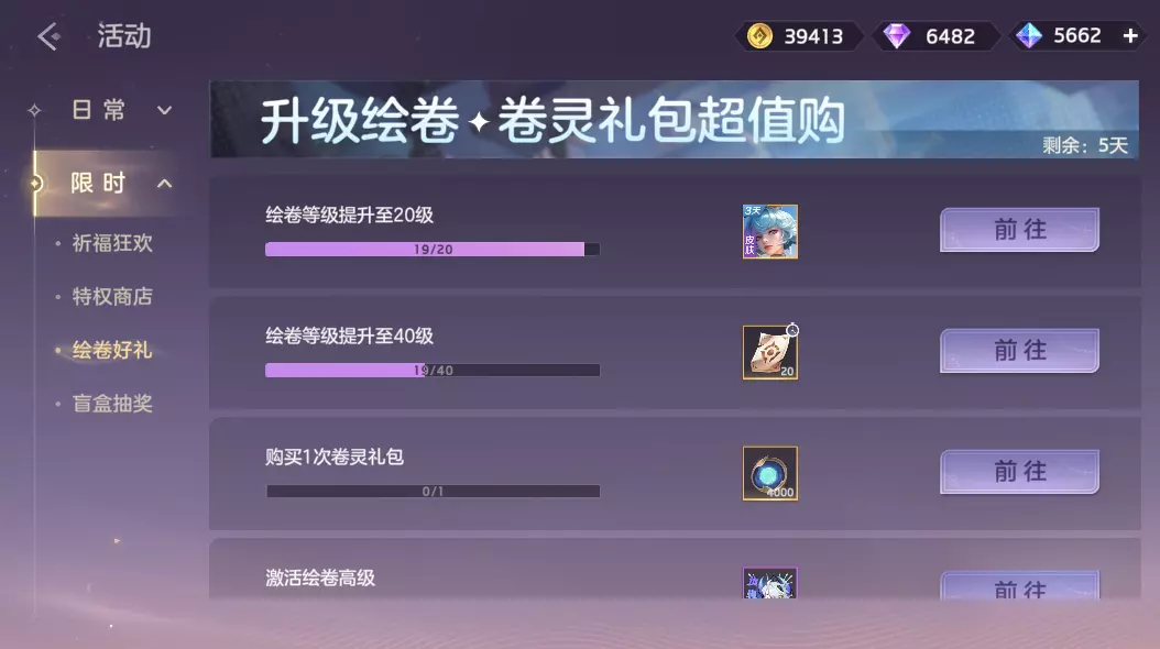 卷灵礼包限时直售,礼包内含绘卷传说皮肤自选箱、龙晶、绘卷经验包、绘卷福袋、残卷。