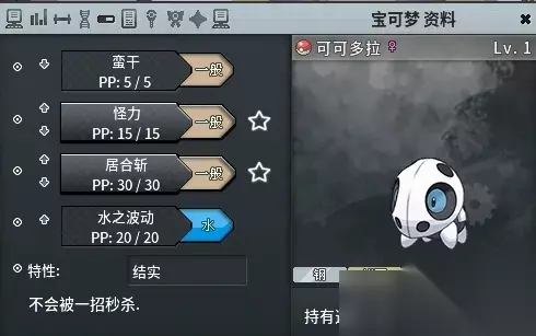 Pokemmo头目宝可梦捕捉攻略。不少玩家可能还不太清楚游戏中的头目精灵怎么抓,下面233乐园带来具体的攻略,供各位玩家们参考。 头目宝可梦捕捉攻略 零、前言 头目精灵除了拥有梦特外,明雷头目也容易有多V的个体值,收益也是相当可观的。但是,相比于普通精灵,头目精灵在捕捉过程中攻击防御更高,且捕捉率更低,我们如何高效的捕捉头目精灵呢? 一、影响捕捉率的要素 1. 血量: 血量越低捕捉率越高 2. 异常状态: 睡眠捕捉率×2,麻痹捕获率×1.5 因为冰冻不好触发,中毒、烧伤还会持续掉血,所以不考虑。 3. 使用的精灵球 大师球:只要你舍得,没有什么是它抓不住的。 先机球(1200):如果在第一回合使用,捕获率×5,否则捕获率×1。 重复球(1500):捕捉图鉴上已有的精灵,捕获率×2.5。 计时球(800):10回合前捕获率倍数为1+回合数×0.3(或者0.33?),十回合后捕获率×4。在第5回合时,计时球的捕捉率×2.5,与重复球等相同,之后超过重复球。 高级球(1200):捕获率×2。 精灵球(200):捕获率×1,概率什么的都是浮云,在红白面前只有捉住和捉不住! 捕网球(1500):对于水、虫系精灵捕获率×2.5。 黑暗球(1350):在洞窟或时间为夜晚时,捕获率×2.5。 你可以选择开局直接丢先机球,如果不中退了重来。 我更推荐前4回合用重复球,之后用计时球,更省钱且捕捉率更高。 二、头目精灵的一些机制 在对战明雷头目的过程中,其攻击、特攻、防御、特防都会大幅增加,一般的技能(比如点到为止)都是打不太动的; 除了第一回合,每回合开始头目都会有概率充满野性之力(所有能力上升一级); 野生精灵与训练家的精灵不同,它不是按克制技能放的,而是乱放技能。 三、打法 基本遵循:第一回合可可多拉蛮干,然后被打死退场,后面继续睡眠或者麻痹,不停丢球(前4回合用重复球,之后用计时球)。 四、精灵推荐 以下所有精灵只有配招和特性需求,个体值、努力值均无任何需求! 4.1 可可多拉,捉头目必带 可可多拉(配招以文字为准!)