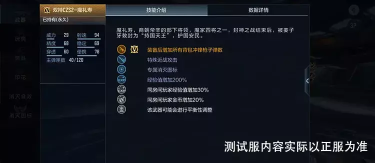 各位CFer大家好,今天给大家带来一期封神系列武器之一双持CZS2-魔礼寿的抢先爆料,《封神演义》这部家喻户晓的神魔小说,一直保持着较高的话题度,同时魔家四将作为首次登场的团战级别角色更是在早期封神大战中赚足了我们的眼球,那以魔家四将之一魔礼寿命名的这把双持CZS2到底怎么样,快随我一起来看看吧~