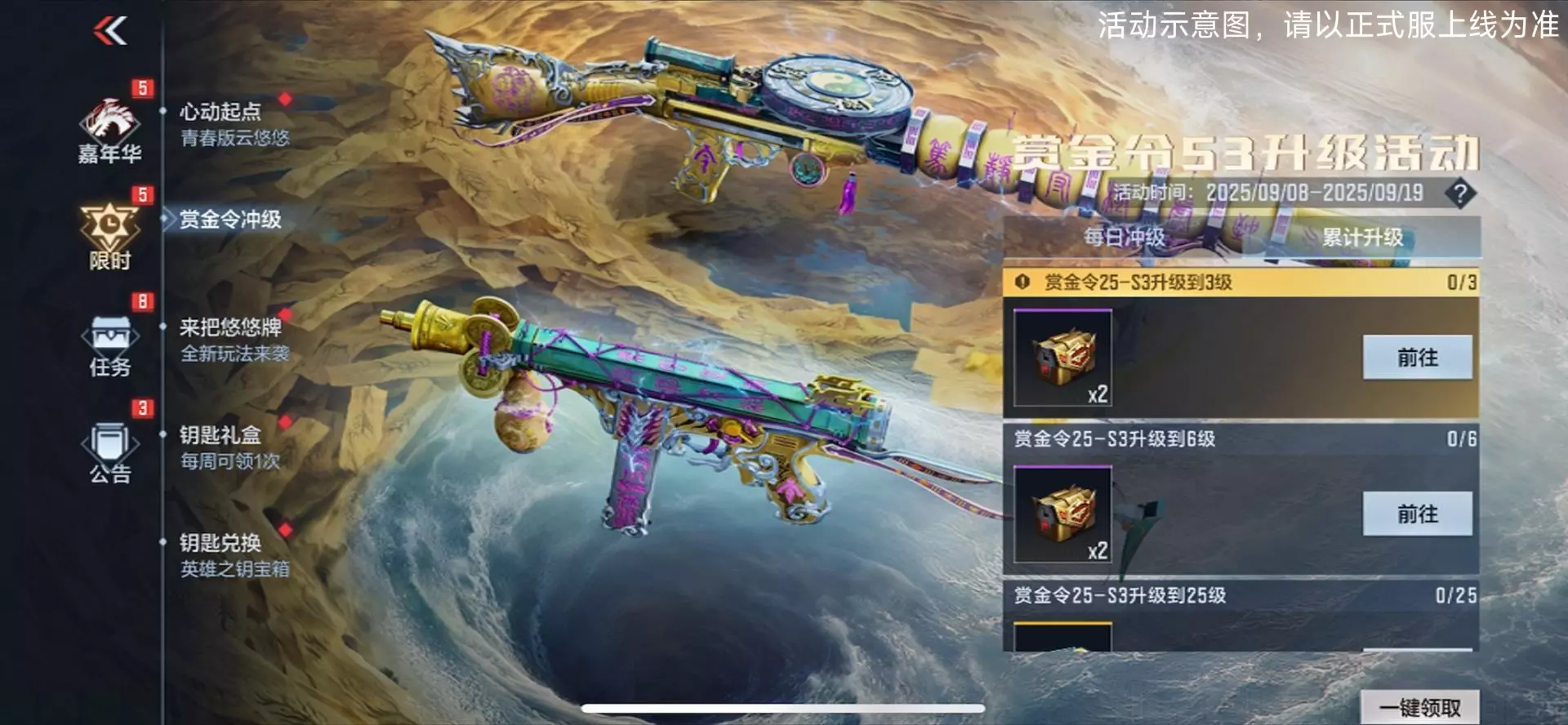 各位CFer注意!季末冲级狂欢号角即将吹响!S3赛季末赏金令冲级活动将于9月12日至9月19日0点限时开启,重磅奖励已蓄势待发,这波福利绝对让你满载而归,千万别错过!