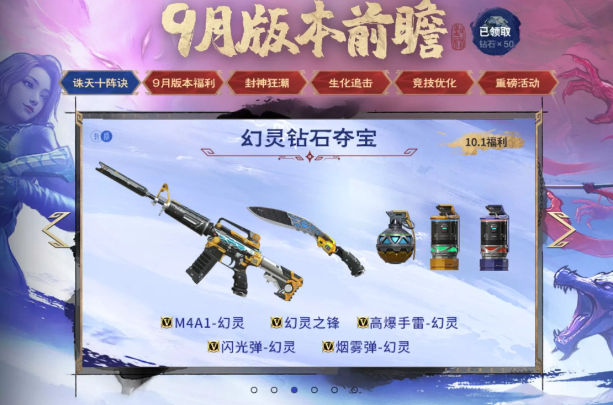 本次赏金令冲级活动分为累计升级和每日升级。首先是累计升级一次性豪礼,等级越高,奖励越劲爆!当你赏金令等级突破3级、6级时,每份赏金令钻石宝藏×2即刻到手,要知道钻石可是战场硬通货,既能购置心仪武器,更能兑换王者之骰助力你早日获取全新王者武器王者之誉。另外10月1日还有幻灵钻石夺宝,现在储备只等拿下M4A1-幻灵等武器!