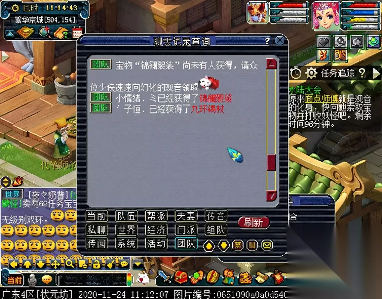 单人任务达成后,组三个号在原地待命,其余两个号跑到繁华京城459,169处准备找人。
