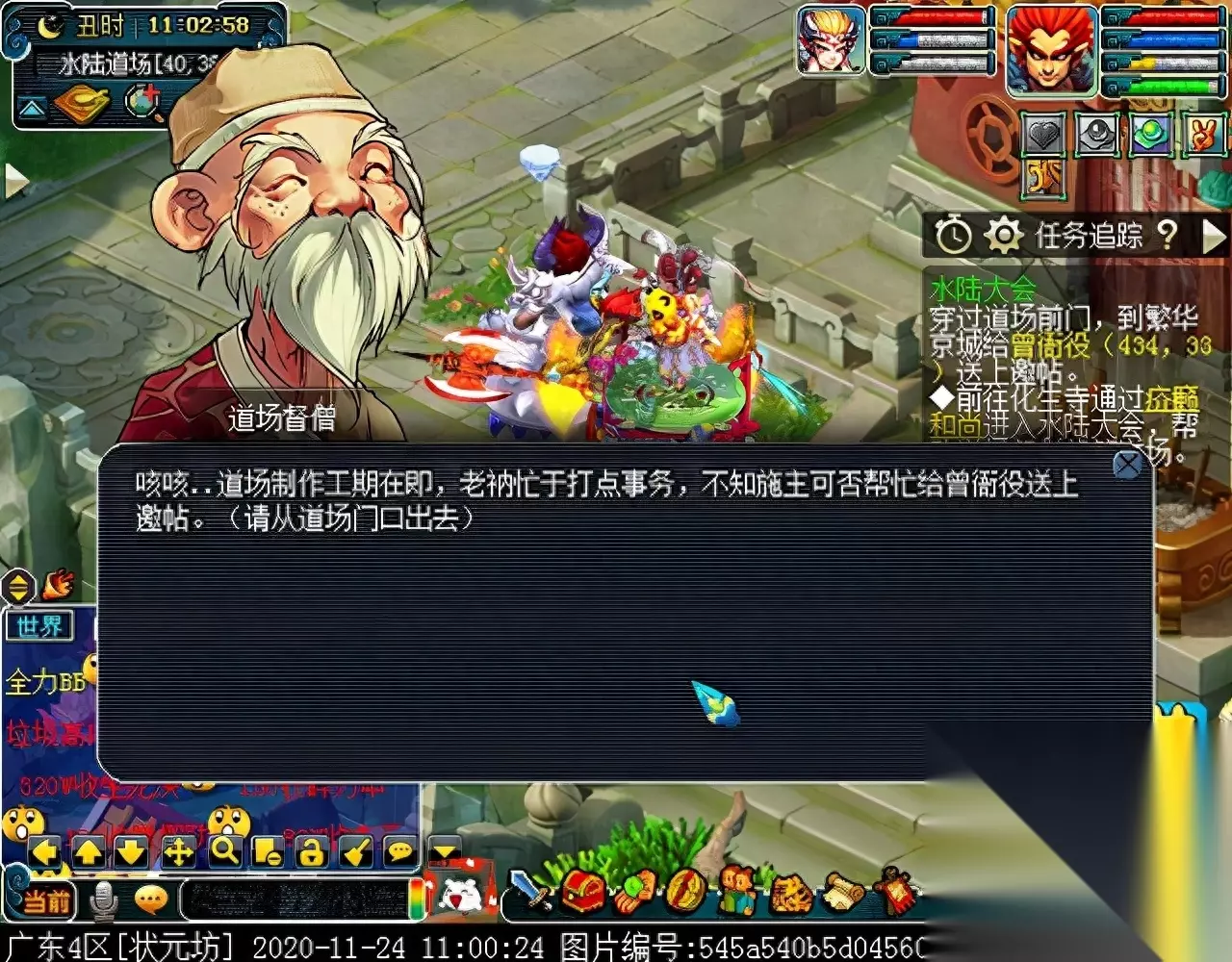 邀请类任务,需要通过水陆道场的长安传送人(6,4)传送到繁华京城,然后找到对应坐标的百姓即可,建议找到后使用合成旗飞到化生寺入口处,再传送进来继续领取任务,有助于快速达成副本哦~