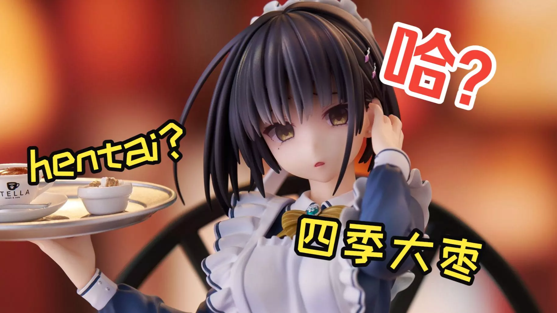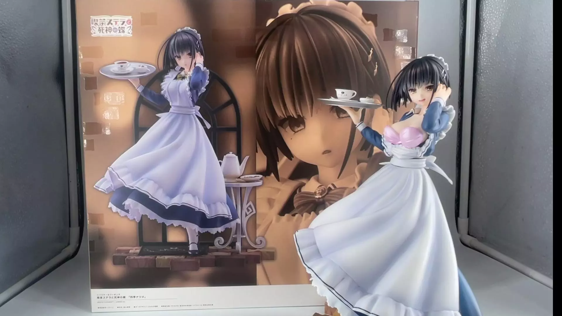 本次展示的是出自《星光咖啡馆与死神之蝶》的四季夏目双版本手办,分别为女仆装版本和清凉内衣版本,手办搭配有茶点相关场景配件,细节精致。