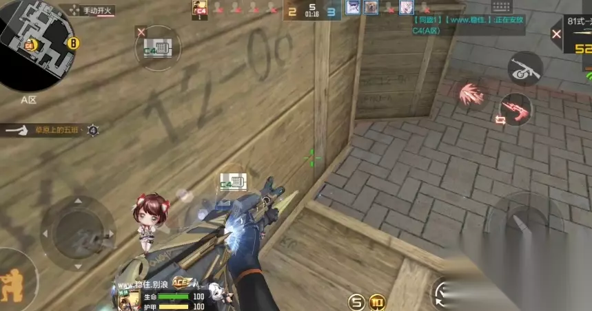 这几种安放C4的方法敌人站在最下面的地面上是无法进行拆除的,只有跳到对应的箱子上面才能继续拆炸弹。而且下完C4之后的第一时间你需要找到有掩体的位置拖延时间,如果对方不管你的位置直接拆除炸弹的话直接通过穿射击杀箱子后面拆包的敌人就可以了,即使对方第一时间把自己这一方的队友全部歼灭,也无法做到第一时间在地面上就开始拆包,所以潜伏者一方只用等待炸弹爆炸就可以赢下这一回合。