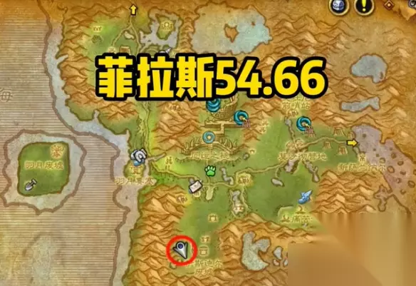 2、我们需要前往地图菲拉斯的乱羽高地,坐标(54,66)的位置。
