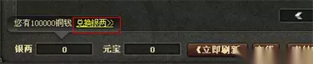 三、铜钱兑换 仍持有铜钱货币的玩家,可以在游戏商城中把铜钱直接兑换为银两。 进入游戏商城界面,点击左下角兑换银两就能自动根据相应比例进行兑换。