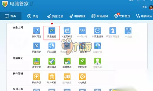 打开后按"流量监控"。