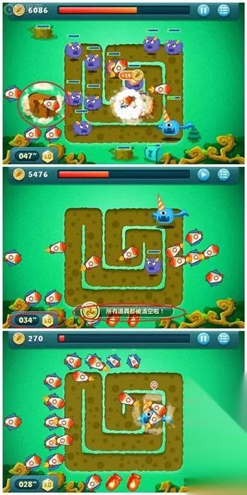 跟第一关差不多,也是BOSS很弱,所以重点还是先不打BOSS,先清道具。不过这一关时间减少了10秒,可用的道具也没有像魔法球那样攻击力大的,所以这一关的道具我只…