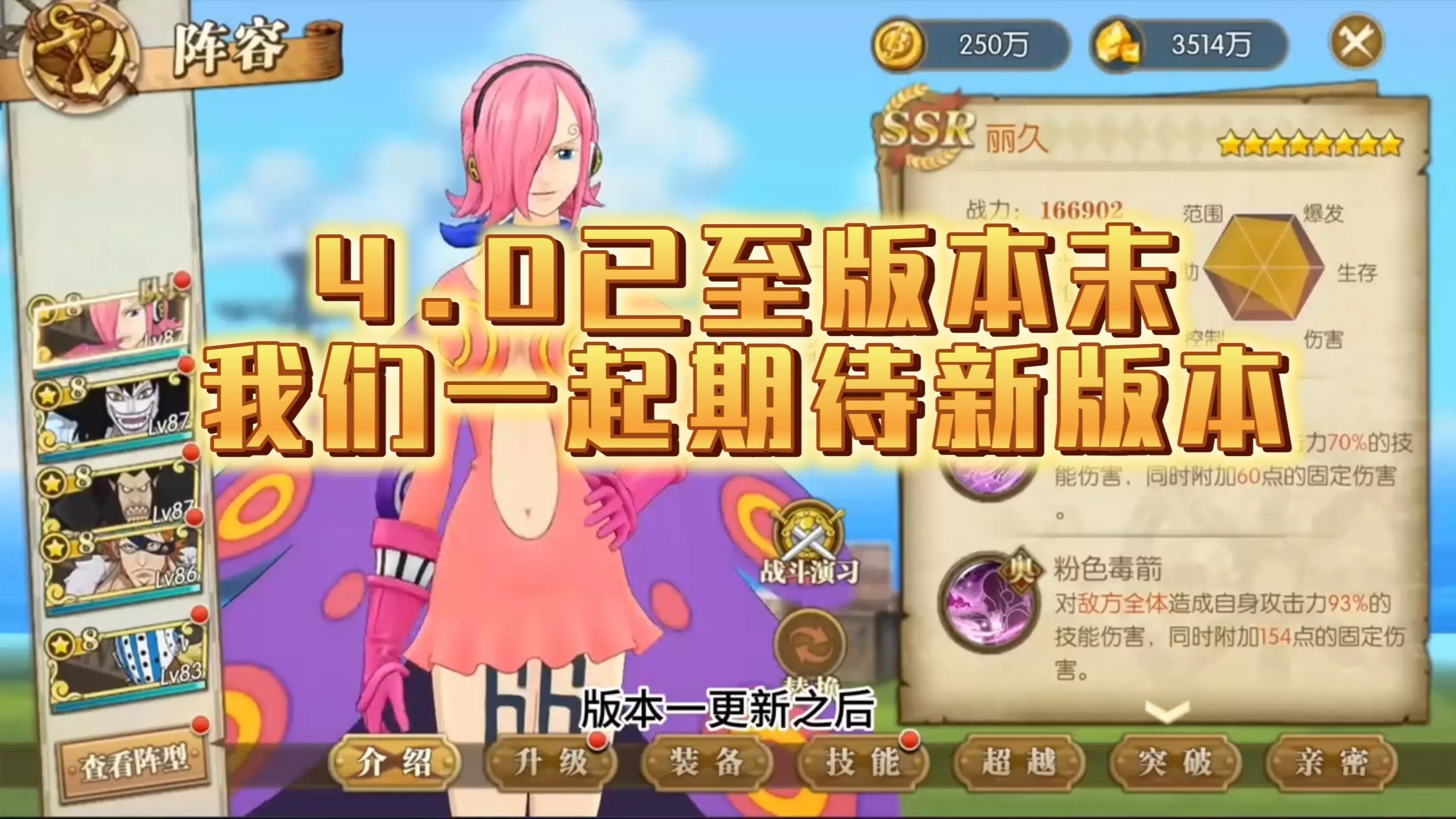 这是航海王游戏的大口真神大和攻略,介绍了该角色的技能配置,包括愈战愈强等天赋、神足白蛇躯奥义、终结技等,该角色主打单点爆发前排,能无视伤害减免,还有追加攻击等强力效果。