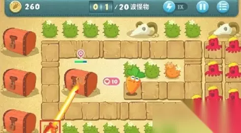 在《保卫萝卜》中有很多有意思的关卡,通过的地图越多难度也就会越大,不过随着地图的变化我们也可以获得到更强大的炮台,今天为大家介绍的就是沙漠地图中的第十四关。