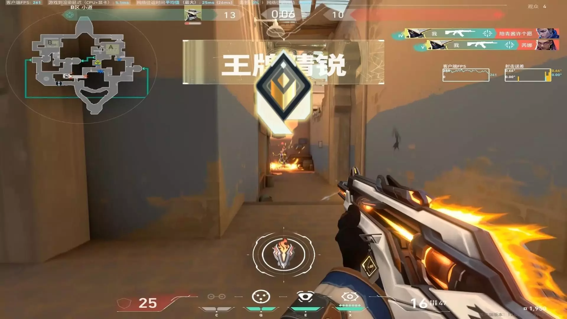 这是《无畏契约》的选手第一视角教学内容,展示了游戏中的实战场景,分享赋能选手的对战思路,包括点位判断、回防策略等,帮助玩家学习游戏作战技巧。