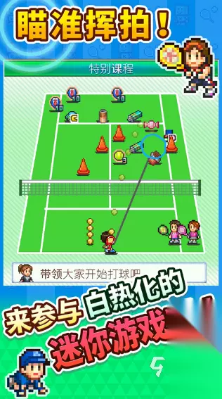 这款游戏采用了经典的像素画风,操作起来十分便捷,支持旋转触摸屏以及页面滚动功能。在比赛过程中,玩家能够自由地放大或缩小画面,力求最大程度地还原真实的网球竞技玩法。玩家将扮演网球俱乐部的经营者,负责管理一个网球场地。玩家需要想尽办法吸引更多人来这里打网球,同时积极拉拢赞助商,以此拓展自己的业务版图。玩家可以招募风格各异的网球选手,针对他们的特点进行专项训练,提升选手的各项属性,并带领他们参加各级别的联赛。 》》》》》#网球俱乐部物语#《《《《《 3、《冠军网球》