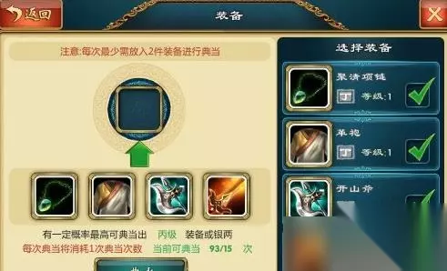 点击扬州当铺后大家可以选择装被来典当掉(典当每天是有固定次数的大家要珍惜)下面小编讲和大家详细讲解如何靠典当刷装备。