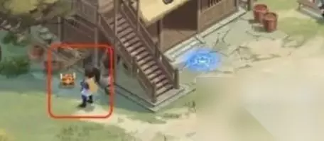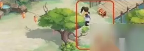 位置三:桃源村院子 1、来到桃源村院子木桥边果树下,在树下不难发现一个宝箱。