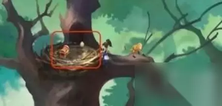 2、来到神木林顶层深处可以看到一个鸟窝,在鸟窝里边可以看到一个宝箱。
