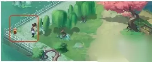3、最终来到神木林左下方桥边可以看到一个宝箱。