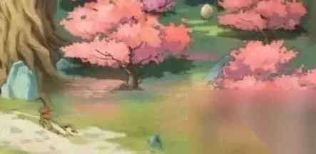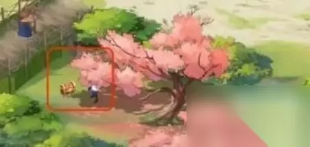 2、然后来到神木林右上方树木旁,在一个粉色的树下边可以看到一个宝箱;