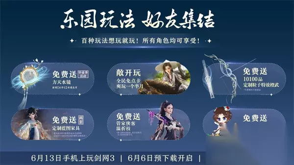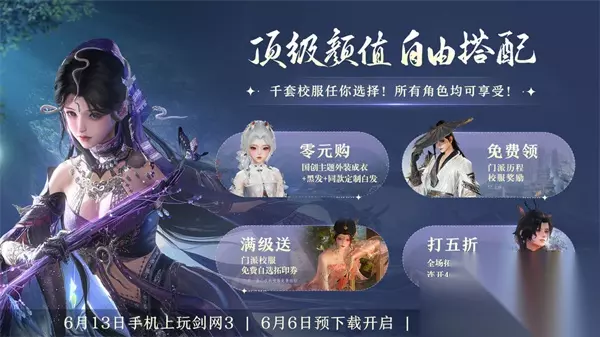 剑网3无界公测时间是多少 是在2024年6月13日开启公测。且游戏在6月6日就会开启预下载捏脸的功能。 剑网3无界的公测福利 1、上千套十分精美的服饰给游戏玩家去使用的,并且还有白送的半折优惠券。