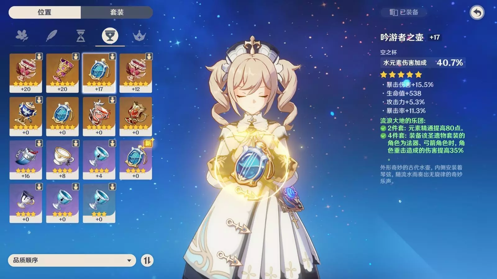 空之杯:主属性选水元素加成 副属性同上