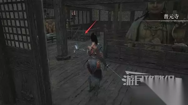 佛源镇-普元寺 寺院 出门激活普元寺神龛,左边有几个帐篷里有人可以对话,对话可获得药品。然后回来走下阶梯前往寺院。 注意屏幕右下角的罗盘,罗盘周围的红色箭头代表附近未激活的神龛,黄色箭头代表NPC。