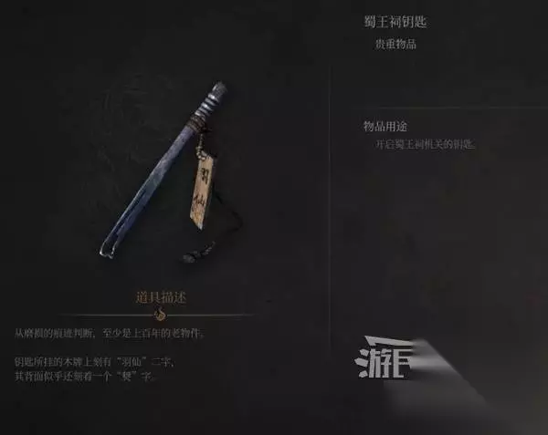 来到药店门口,往下走是死路,刚才去熊猫那边时,从下面见过这堆障碍物。 往前走,右边房子后面打罐子怪得到【黯淡红羽】。 前方的门打不开,以后会从另一面打开,往左拐来到蜀王祠。