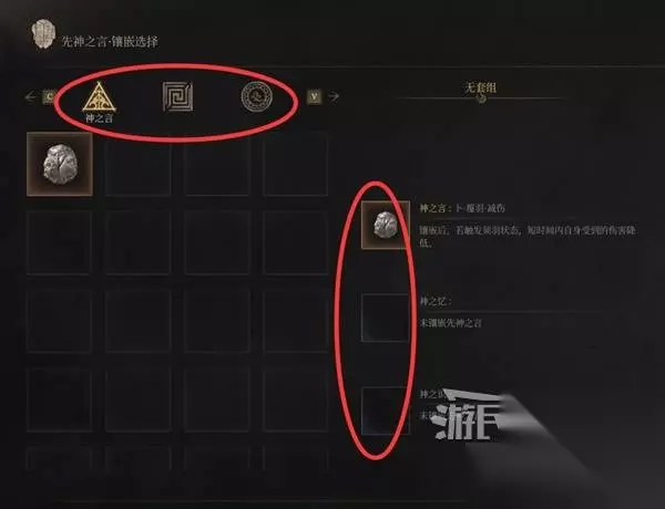在神龛处可以为武器镶嵌先神之言。 注意,先神之言分为神之言、神之识、神之忆三类。