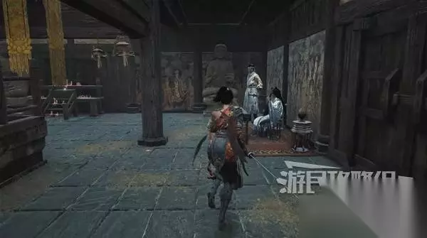 另一边见到陶青,给他头陀的铜尊,商店解锁购买【防具】头陀套装。通过对话得知:头陀抢来戏班的冯小宛,被抓那俩小孩就是冯小宛的俩儿子。 在吴刚处可购买【双刀武器】等长双刀、【先神之言】人·覆羽·复元,长柄斧已经捡到过了,等长双刀不买也行,后面可以捡到。把头陀的金钵盂交给吴刚,商店解锁购买【防具】摇黄贼套装、【防具】假僧套装、【先神之言】未·学贯三绝·强攻。摇黄贼套装和假僧套装,有敌人会随机掉落,游戏中还有很多敌人都会随机掉落各种服装。 女道士黄剑娥说,他的师弟们被困在了地宫里,嘴里念叨着陆红柳和三清铃,她会给你【防具】真武发簪。 从陶青旁边的门出去,可以从背后偷袭刚才那个明军士兵,稍后再去。 蜀王祠外面周围一圈,逛逛有东西捡。
