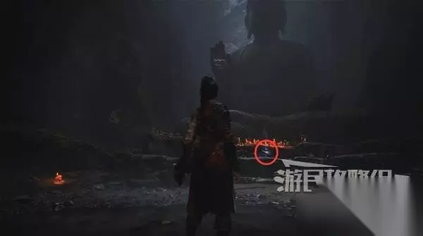 佛源镇-普元寺 寺庙 游戏一开始先不急走出洞窟,转身看背后,在佛像前捡到赤汞幼芽。赤汞相当于魂系游戏的“魂”或艾尔登法环的“卢恩”,用于在神龛升级或在商店购买道具。