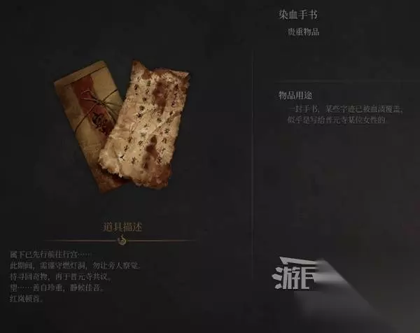 继续走楼梯上三楼,尸体旁捡到【贵重物品】染血手书。普元寺那个神秘女子瑜夏的手下红岚,已经去了唐王行宫。信里说的燃灯洞,就是女主在游戏最开始醒来的那个洞。 准备些抗腐化的药,开门打“羽化祭司”禄秉璋,使用骨哨可召唤年大侠帮你打,记得用淬羽给武器附上火。