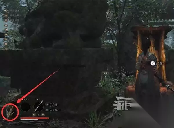 连续攻击敌人,或从中小体型人形敌人背后发动一记蓄力重攻击,能让敌人瞬间丧失抵抗,陷入破刹状态。(锁定敌人时,锁定的白点周围的圆圈积满就会破刹) 对敌人造成破刹后,从敌人的背后或正面使用轻攻击即可发动处决攻击,造成大量伤害。 学习利用破刹,击败唐王宫女,获得【先神之言】卜·覆羽·减伤。