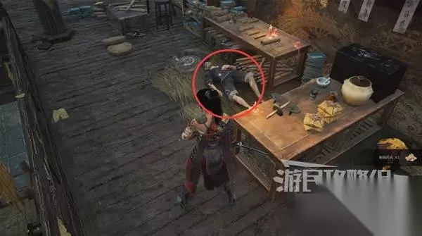 从背后偷袭明军士兵,击败他得到【防具】明军套装和一个技能点。 然后可以通过隐形桥,或者爬梯子上房顶,抵达河对面。