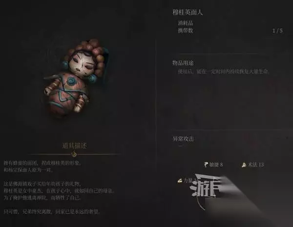 建议在神龛升级单手剑的“清守御敌”技能,可快速积攒须羽槽,配合远程法术攻击非常好用。 躲远些,连续放远程法术,可轻松击败“盗墓贼首”吃人头陀,得到【贵重物品】铜尊、【贵重物品】禅院钥匙、【法术】头陀的回响。 以及【淬羽砭石】羽骨砭·火焰、【淬羽经脉】。在神龛给手臂的穴位装备淬羽砭石,然后使用淬羽经脉可为武器附上特殊效果。 打不过的话,战败后去找吴刚对话可获得补血物品。