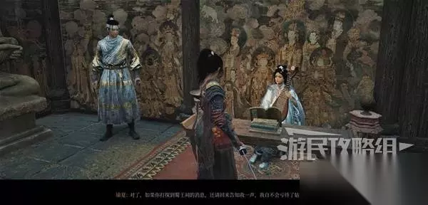 传送回普元寺,把染血手书交给瑜夏,她劝你不要去唐王行宫,并给你【玉佩】甪端玉佩。从玉佩描述可推测,瑜夏的身份肯定极其尊贵,可能和皇家有关。