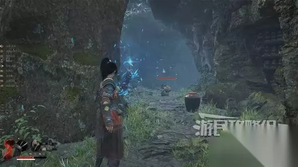 来到瀑布后面的隧道,经过一具尸体时,获得【法术】唤剑诀。 注意旁边这种发蓝光的草,碰一下可补充须羽槽。所以此时可以放心对着敌人练习法术,这里补充须羽槽很方便。